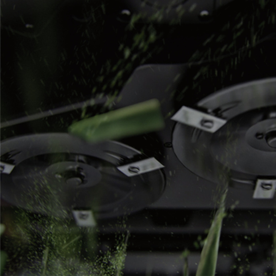 Das Mähdeck passt sich flexibel an die natürliche Kontur des Rasens an, für gleichmäßiges Schnittbild, auch bei Bodenunebenheiten.